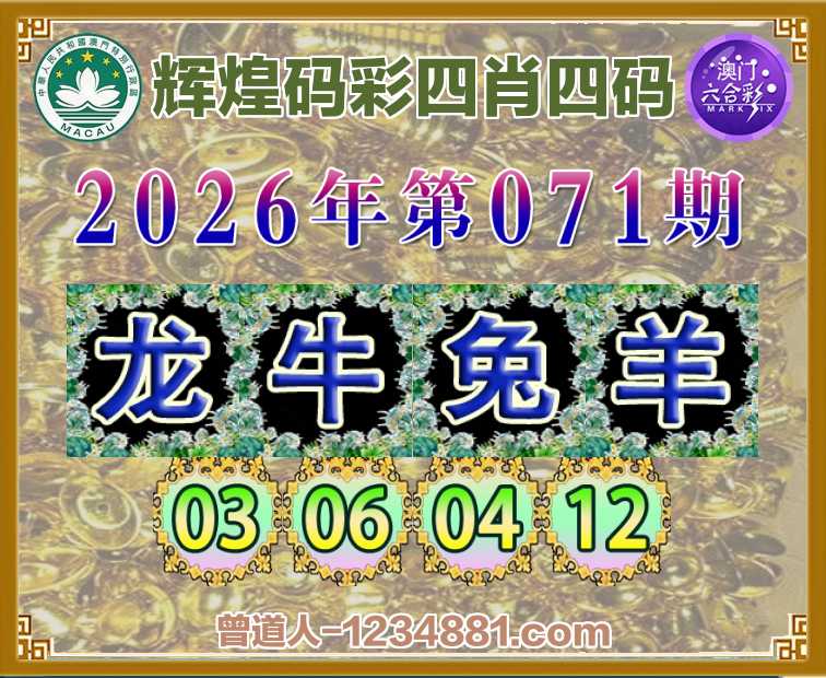 071期:《辉煌码彩》 👩‍🌾四肖四码👩‍🌾【龙牛兔】【03.06.04.12】开:羊48