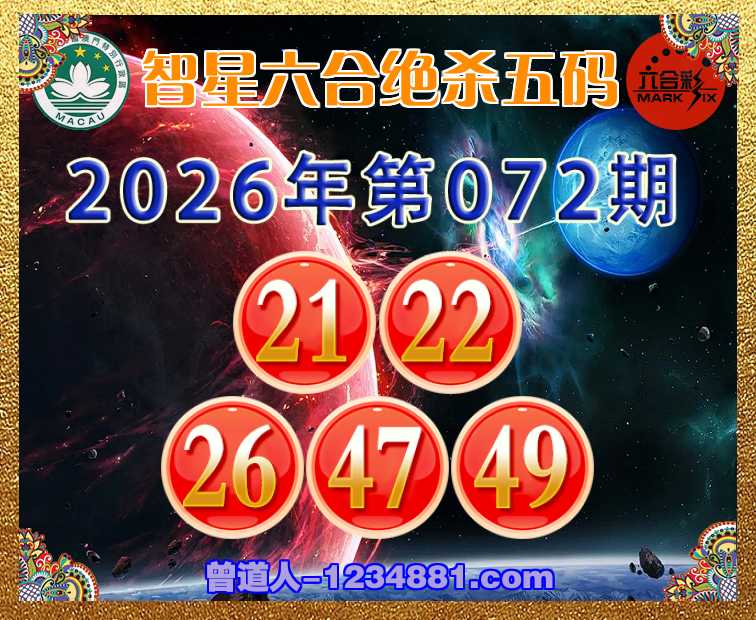 072期:《智星六合》 💎绝杀五码💎【21.22.26.47.49】开:00准